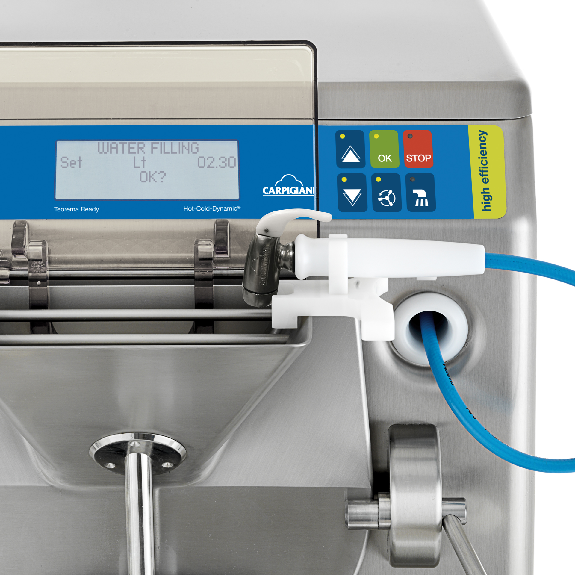 Dank der Hot-Cold-Dynamic® Adaptive-Technologie erkennt die Maschine automatisch Menge und Art der Mischung. Darüber hinaus moduliert es das Kalt- und heiß Gas dynamisch, optimiert den Wärmeaustausch während des Gefrierens und vermeidet Verbrennungen während des Verarbeitungszyklus.